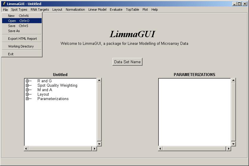 It is possible to save multiple Limma files with the same data set name (displayed above the left status window) but with different file names (displayed in the title bar).