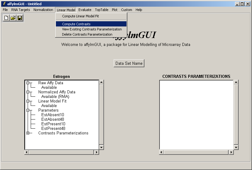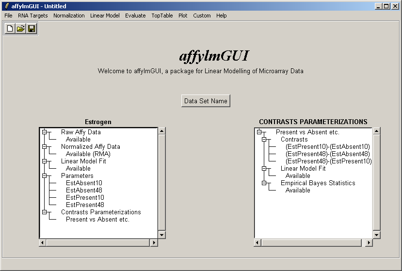 After the data has been loaded the left status window is updated in the main affylmGUI window.